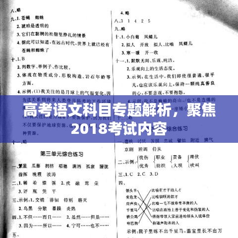 高考是中国教育的重要里程碑,每年的高考都会吸引全社会的关注,作为高考的重要科目之一,语文考试不仅考查学生的基础知识,还考查学生的理解和应用能力,本文将围绕“2018高考专题语文”这一主题展开,深入探讨语文科目的考试趋势、备考策略以及考试技巧。