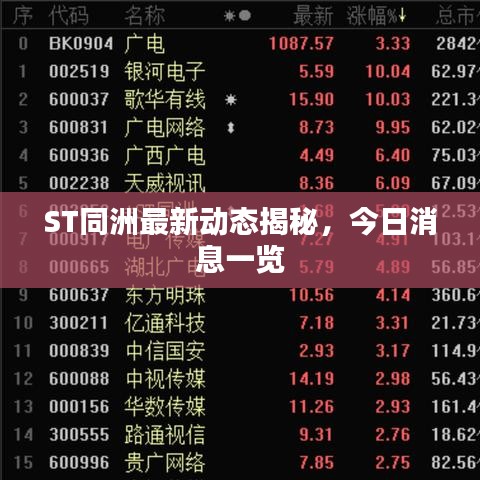 随着科技的不断进步和市场的日新月异,各行各业的企业都在努力寻求创新与发展,在这个背景下,ST同洲作为电子通信领域的领军企业,其最新动态备受关注,本文将围绕“今日ST同洲最新消息”这一主题展开,带领读者了解ST同洲的最新发展状况。