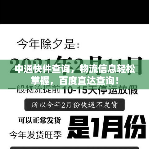 随着互联网技术的不断发展,快递业务已成为人们日常生活中不可或缺的一部分,中通快递作为国内领先的快递企业,其服务范围广泛,物流信息透明度高,备受消费者信赖,当我们在日常生活中需要查询中通快递的物流信息时,“百度一下中通快件查询”成为我们的首选方式。