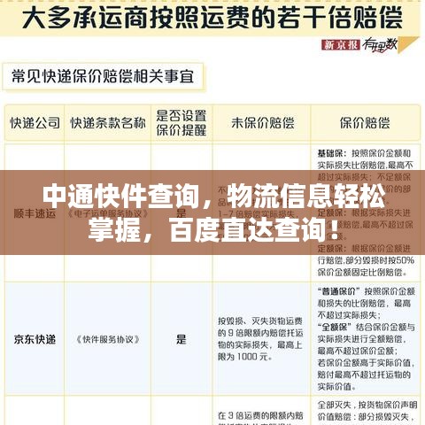 “百度一下中通快件查询”为我们提供了便捷的中通快递查询服务,通过百度搜索,我们可以轻松进入中通快递的查询页面,实时掌握快递的运输情况,中通快递作为国内领先的快递企业,其优质的服务、高度的物流信息透明度,赢得了广大消费者的信赖。