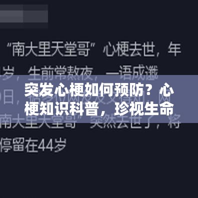 生命脆弱而宝贵,心梗的突发让我们更加珍视生命,了解心梗,掌握预防和救治知识,对于我们每个人而言都至关重要,让我们共同努力,提高心梗的防控意识,珍爱生命,拥抱健康。