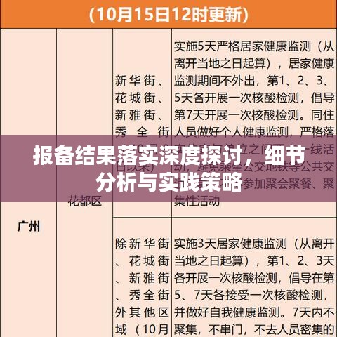 落实报备结果是保障社会安全、秩序和效率的重要举措,为实现有效落实,应提高重视程度,加强宣传教育,完善制度规范,强化监督检查,提高执行力,应结合实际情况,因地制宜,因时制宜,不断创新和改进报备制度,以适应社会发展的需求,只有这样,才能确保报备制度的顺利执行,推动各项工作的顺利进行。