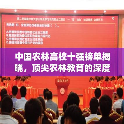 随着社会对农业林业发展的日益重视,农林高校的教育质量也备受关注,本文将为您介绍中国农林高校排名前十名,带您了解这些顶尖农林教育的力量。